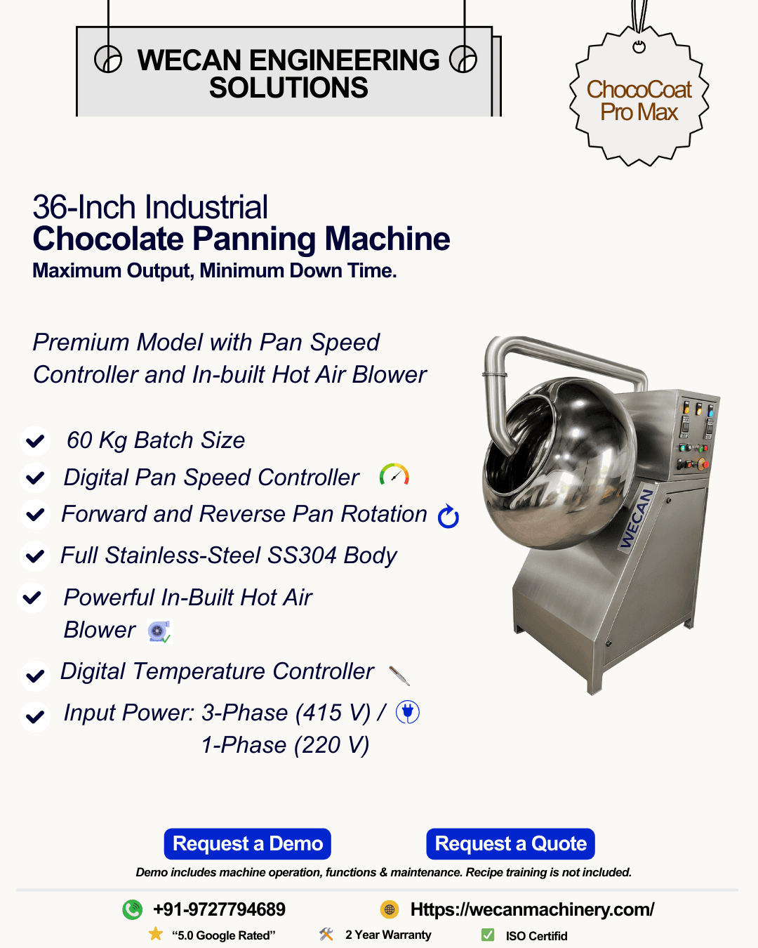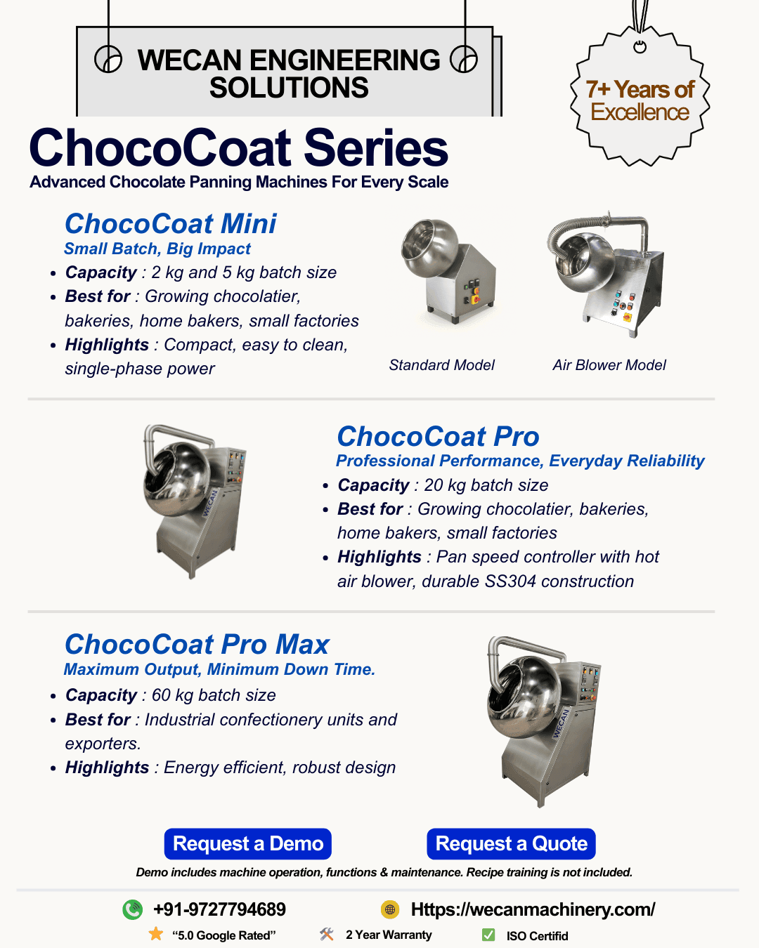 Hersteller von Schokoladen-Paniermaschinen und -Überzugsmaschinen in Indien – ChocoCoat™ Serie von Wecan Engineering Solutions
